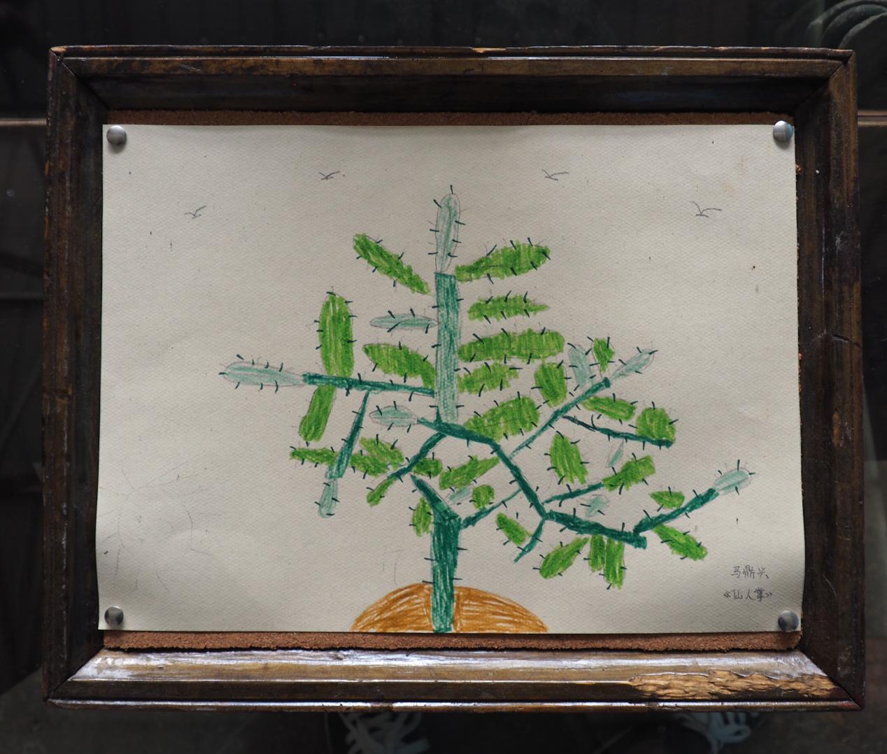 幼儿园儿童的绘画作品《我家的仙人掌》。
