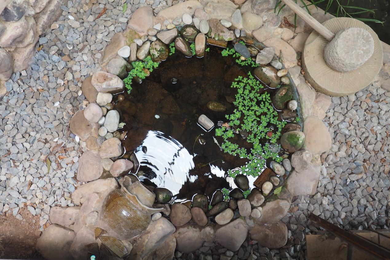 “围墙”内有供幼儿经营的小菜园和樱桃果林,山麓的清泉被引进园区用作营造供幼儿学习嬉戏的流水生态。同时,园区诸多设施、器物、装饰都是“取之自然,用之自然”:用短树枝做的宣传栏,用竹子做的墙饰,用扇贝壳做的矮檐,用旧木桩和空心砖做的花盆,用废木料做的积木玩具,用村里河床鹅卵石造的小水塘……幼儿的很多课程,比如营造与设计、食育和美育所要用到的植物、果实、白胶泥、石块等材料也都来自附近的山川田野。