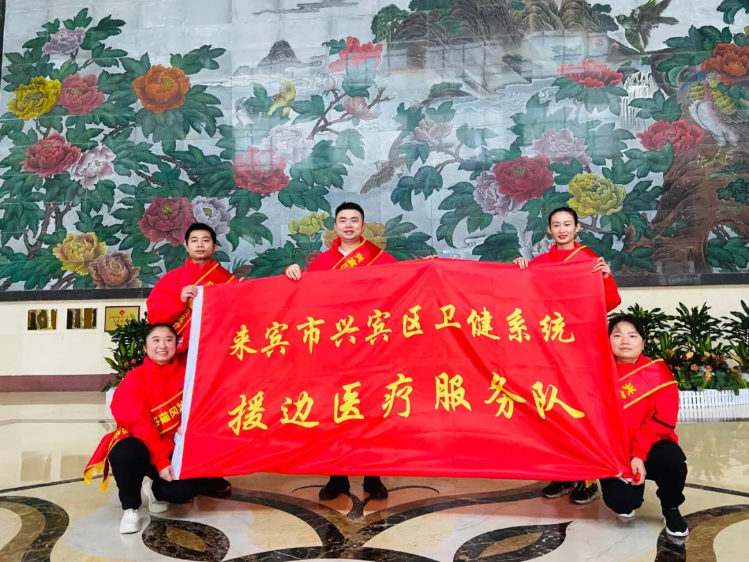 兴宾区援边医疗服务队即将出征。同一天,武宣县、象州县、合山市也举行援边医疗队出征仪式。武宣县援边医疗队由莫胜端、郭秋丽、李金霞、蒙利林、李铁梅组成;象州县援边医疗队由韦欢、韦晓苹、覃巧凤、杨祖美 、欧彦利组成;合山市援边医疗队由黄卫、罗桃组成,他们均将驰援崇左市。