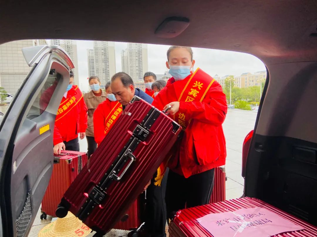 兴宾区援边医疗服务队。在出征仪式上,援边医疗服务队队员表示将牢记使命不负重托,以强烈的使命感、责任感积极投身抗击疫情工作,展现好兴宾医务人员的良好精神风貌。兴宾区援边医疗服务队队员罗秋琼表示,一定要把专业知识扎实运用到边境地区新冠肺炎疫情防控医疗卫生工作当中。