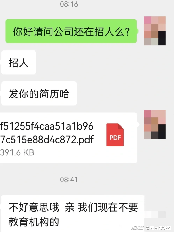 教育机构的裁员没有终止,而对教培从业者而言,寻找下一份工作也变得更困难。10月,凤凰WEEKLY曾发表一篇《“对不起,教培行业出来的,我们不要”》的报道,里面表示,有企业明确表示不招聘教培行业出来的求职者。