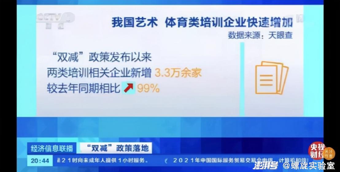 据央视报道,自“双减”政策发布以来,市场上新增了3.3万余家素质教育企业,较去年同期相比增长99%,对大多教培机构而言,从K12转型到素质教育,其“转型”难度会低一点,因此也成了教培机构扎堆的选择。