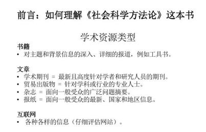 ▲图1首先,对于这样一本书,我们怎样来理解它(图1)?马克斯·韦伯的这本书是一本在讨论社会科学的方法论问题里,非常重要的工具书。但如果各位老师和学生想要发期刊文章的话,则一定要看期刊。期刊关注最前沿的知识上的发展以及如何做这个研究。这就是书与期刊的主要区别。另一个例子,有些书可能是较早之前出版的,介绍的内容往往是对前面若干年一些知识很详细的总结。期刊一般更具有时效性。