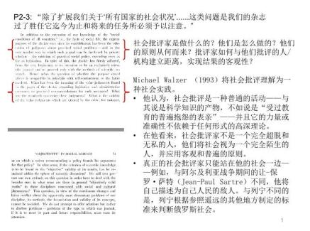 ▲图3请看韩老师译著的第2页,这一段主要讲实践的社会批评(Practical social criticalism)与科学的社会研究(Scientific social research)的关系问题(见图3)。我对这一块非常感兴趣,认为它是一个非常重要的点。下面进一步详细的解释一下这两个词到底是什么意思,在这个期刊里面马克斯·韦伯主要想表达一种什么样的意思?