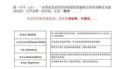 回顾本文,马克斯·韦伯在这一段中,主要探讨:社会科学如何成为一种真正的科学,科学性的社会研究是怎么样的。换句话说,社会科学到底是怎样的一种科学。例如,在第三页中,马克思特别强化观点:社科科学研究是技术(见图5)。换句话理解,如果社会科学研究是技术,那么这项技术就是有标准、可量化......以下是5个常见并且重要的社科科学研究指标的简要解释,如有效性、外部有效性、可靠性、普遍性和客观性。