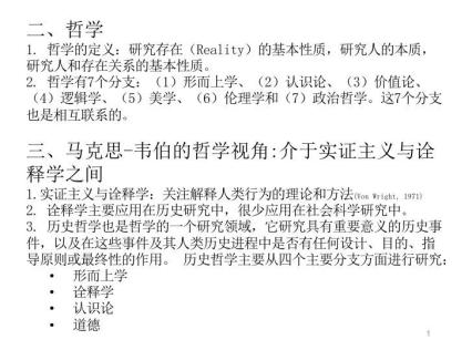 ▲图7再进一步往下阅读之前,我想先给大家简单的讲述一下哲学,以便各位老师和学生去理解马克斯·韦伯的如何理解他所认识的方法论。因为,在现代社会科学研究,哲学视角影响方法论的选择和构建。