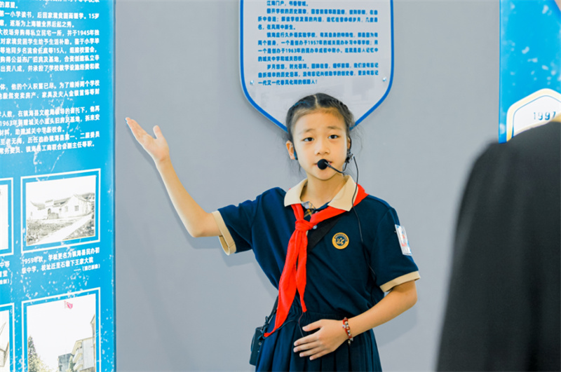 镇海应行久外语实验学校小小讲解员在海润馆介绍