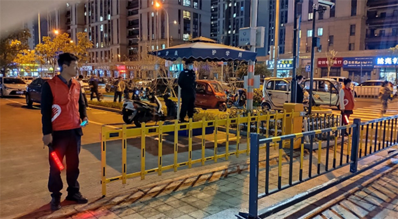 “各位家长请有序停车、有序接送,安全规范骑电动车,孩子家长都带好安全帽......”晚上7点半,尚志中学门口,两位家长提前来到校门口的“护学亭”,披上红马甲,开始维护夜自习下课后的接送秩序。