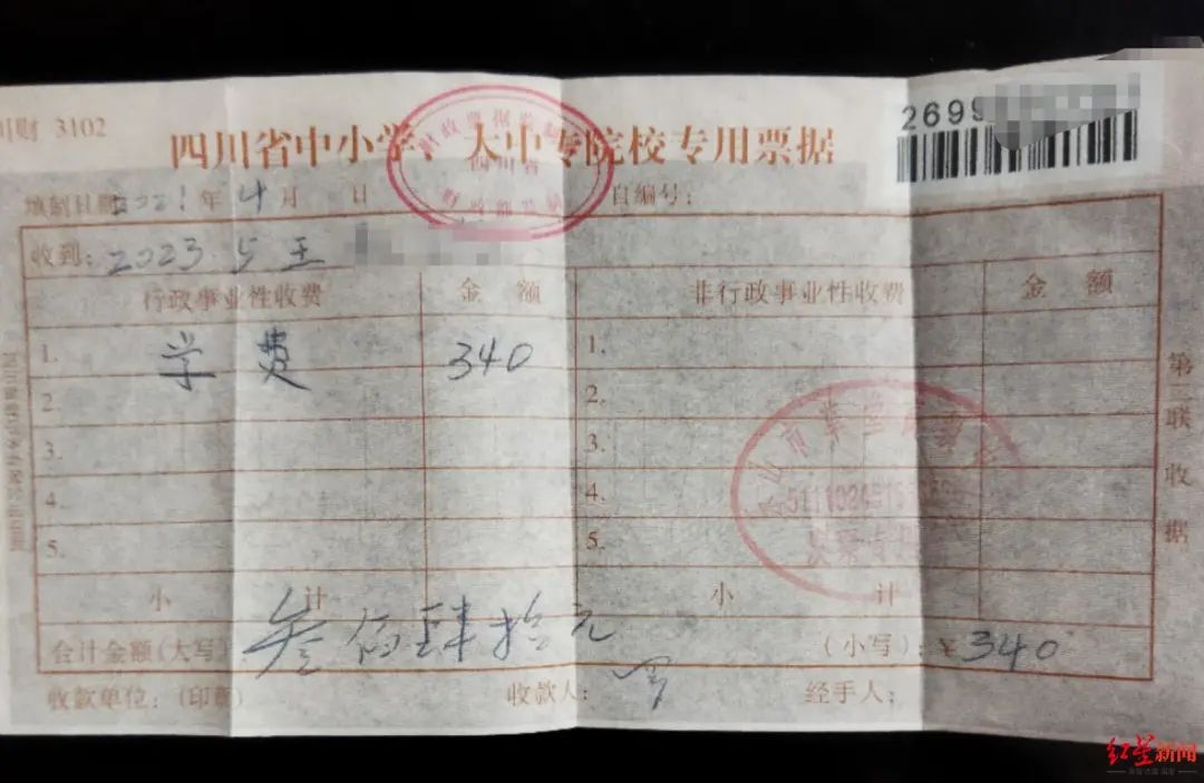 ▲缴纳学费发票不过,当天睿睿没有拿到书本,在教室干坐了一天,且认为所安排班级非常一般,放学回家后便对母亲大发雷霆,声称早知道就不转学了,也不去读书了。