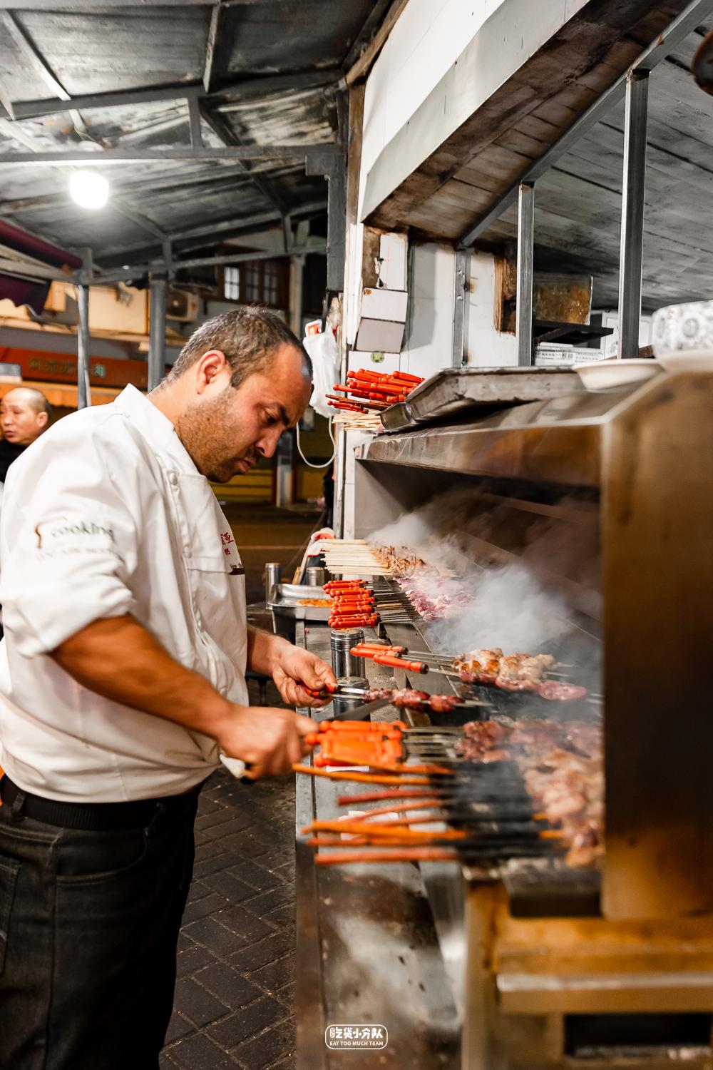 这里像很多清真烧烤一样,只卖荤不卖素,几乎都是10元/串,用大宝剑串住,一烤就烤出羊油来~店里高鼻深目的新疆帅哥也很养眼~麦麦提大串王