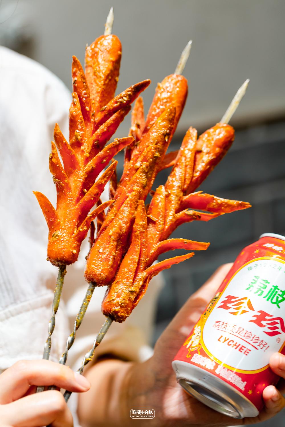 鸡爪是先酱过再烤制的,格外入味。食材新鲜,每天店里自己清洗、焯水、腌制。轻轻一撕皮肉就能撕下来,筋肉酥软、弹糯粘嘴。而且是长柄的,啃起来更爽。· 都是纯正的东北味 ·