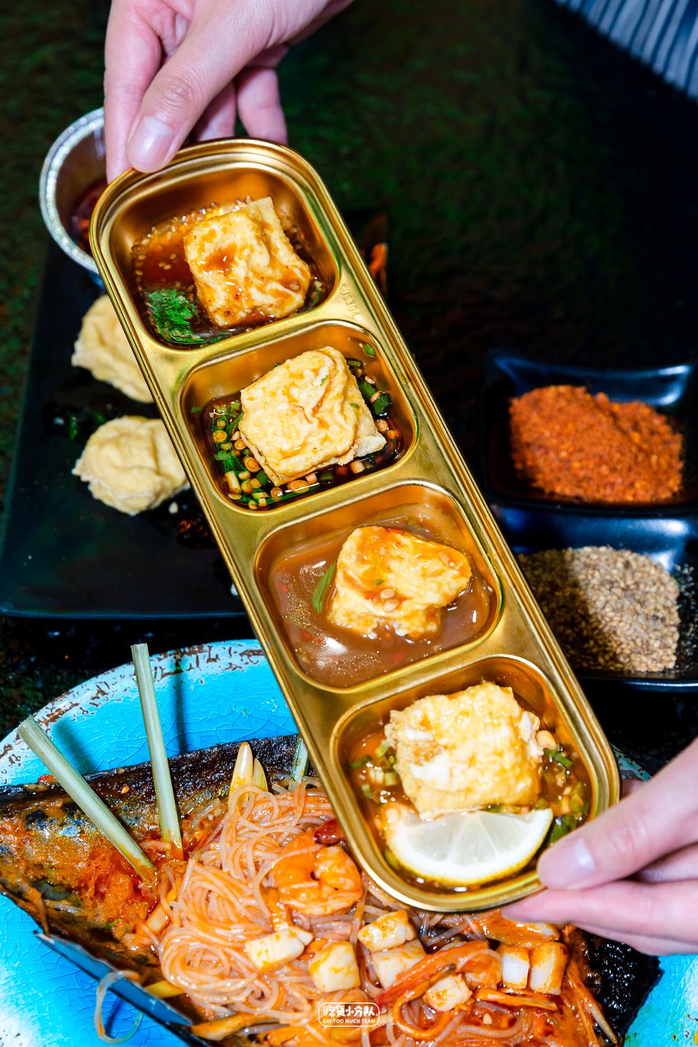 经过炭火慢慢烤熟,发挥出了豆腐自身的香味。蘸上搭配的云南腐乳蘸水,或者云南单山蘸水来吃,香辣入味。· 冬阴功味的烤带子 ·