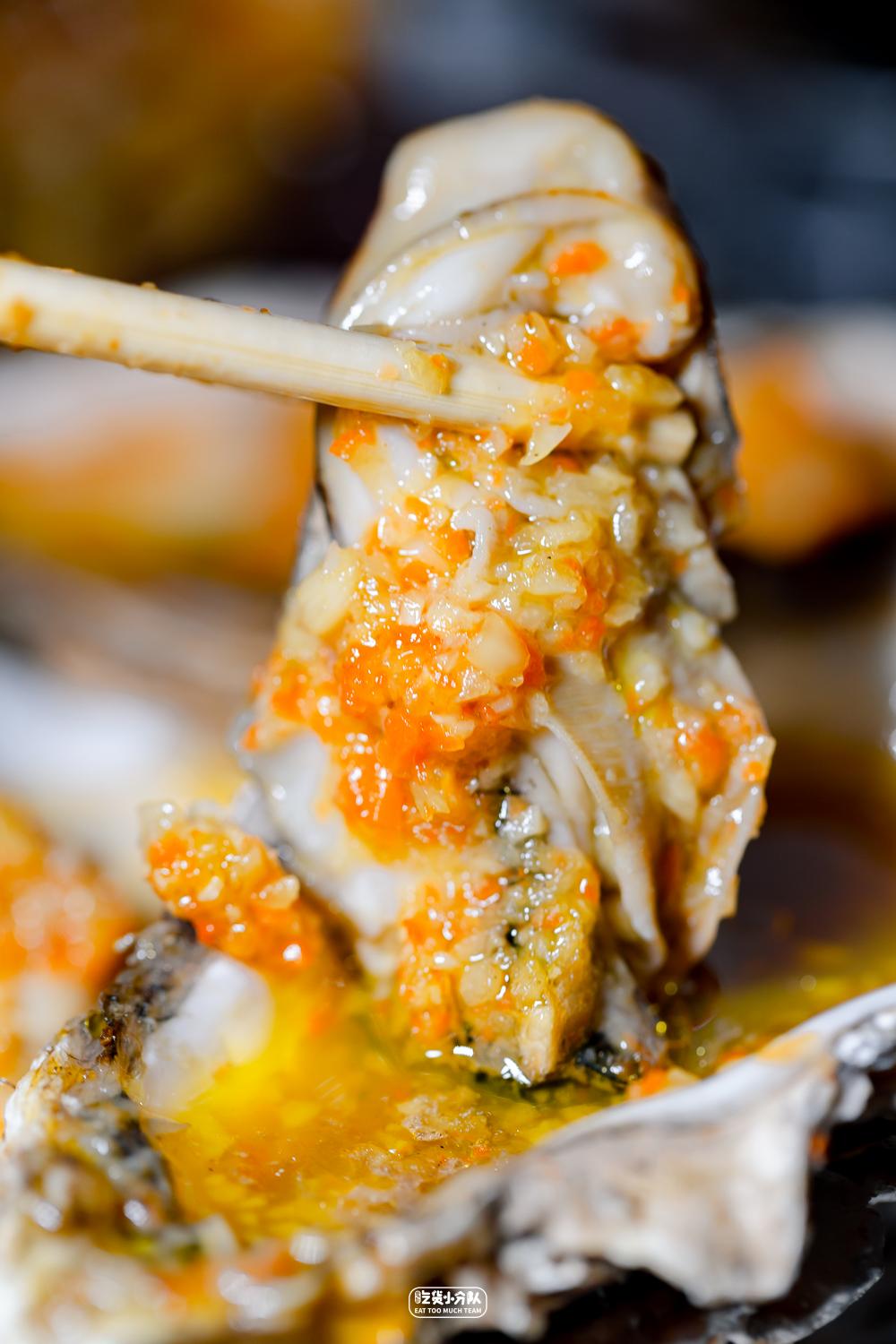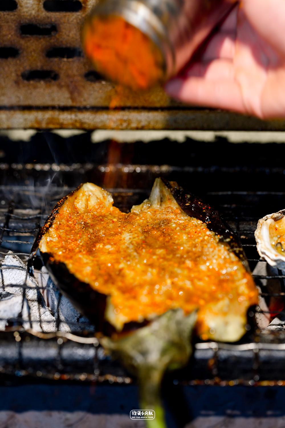 招牌的生蚝说不上哪里特别,就是味道特别正,老板自制的调料,微微的辣味里带一点甜,生蚝壳里还有烤出来的蒜汁和肉汁,可以一边吃肉一边喝汤。· 蒜蓉烤茄子,还是老味道 ·