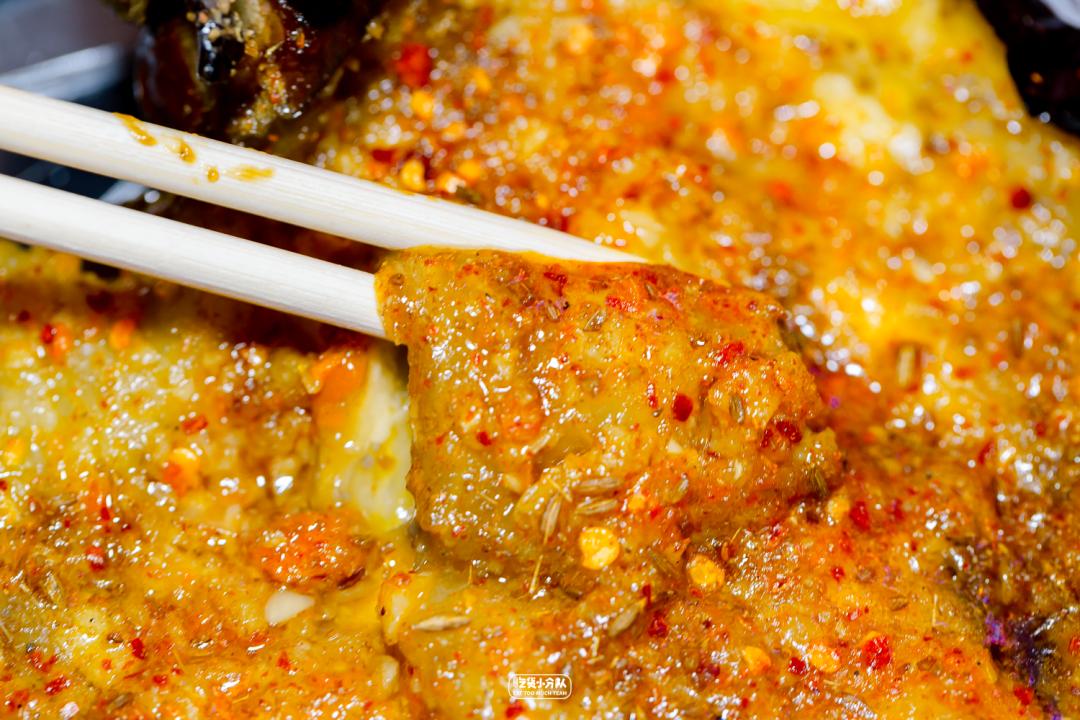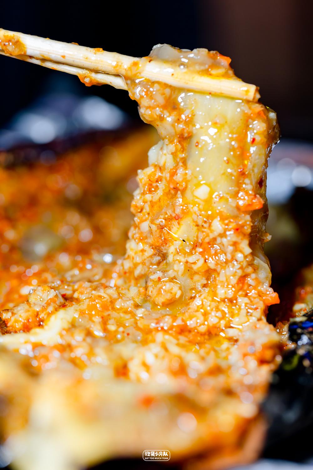 还有这道,平时不爱吃茄子的人也会爱上的蒜蓉烤茄子,整颗刷油后,手动翻烤均匀受热,铺上一层香气扑鼻的蒜蓉,茄肉入口即化。· 只卖肉串,最低6元/串 ·