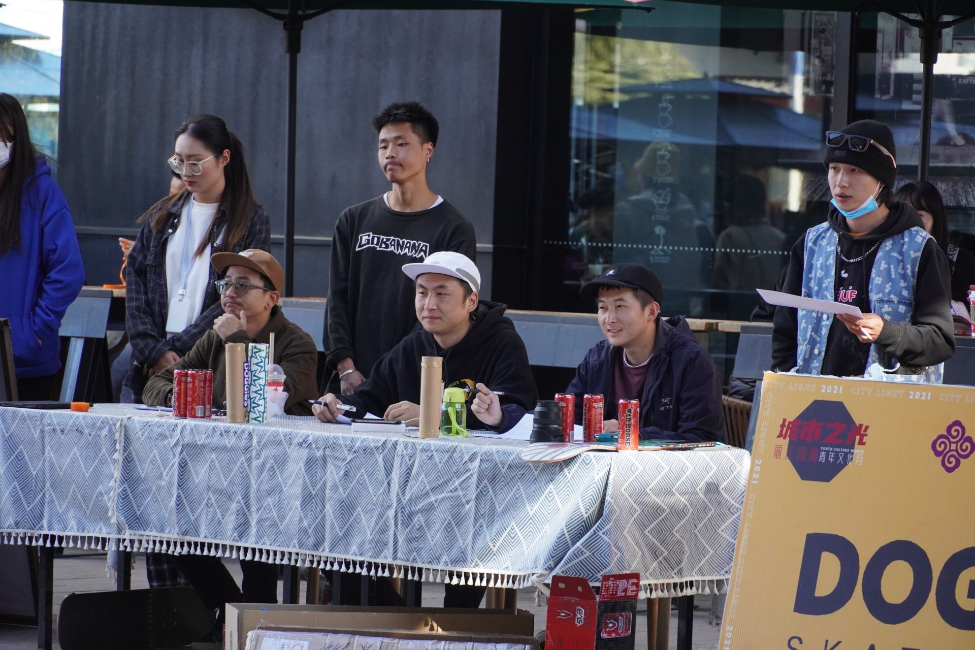 山下街式滑板挑战赛分为预赛和决赛,在今天的预赛上,每位参赛滑手的展示时间为一分钟。在规定时间内,滑手们要充分利用场内道具做好线路动作。通过国家级裁判打分后,评选出成绩前十的参赛滑手进入决赛。