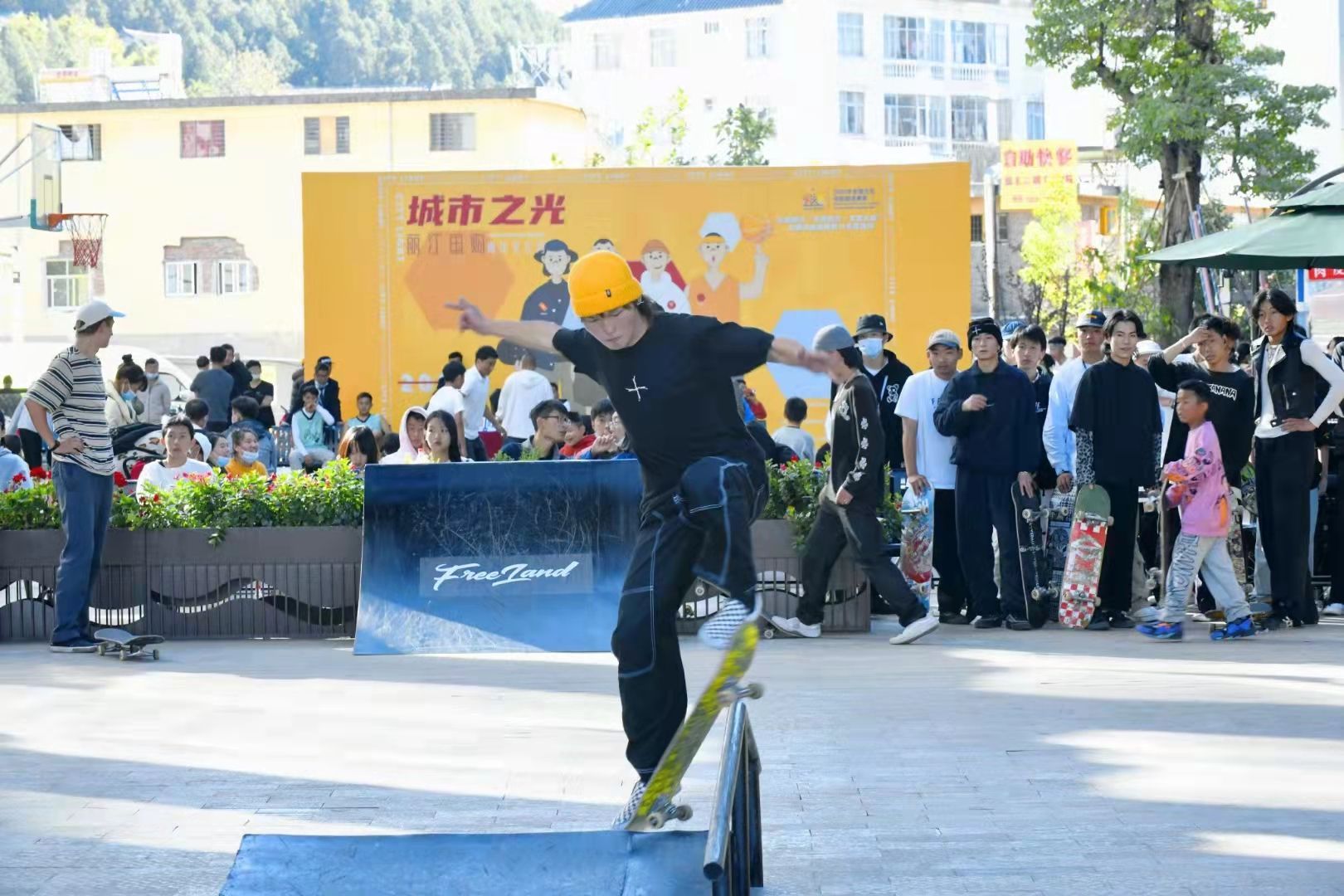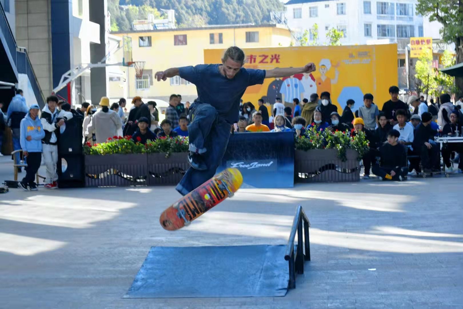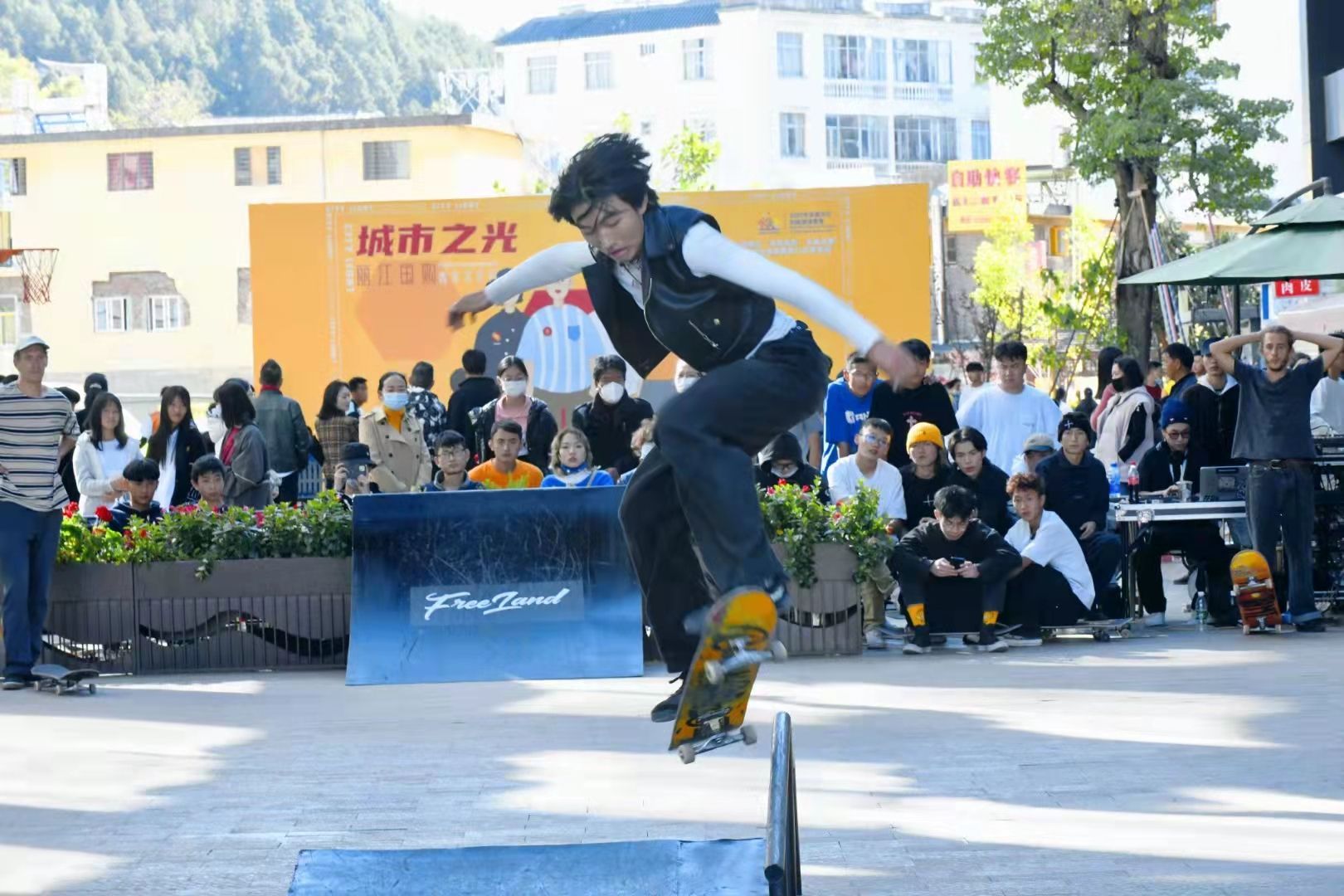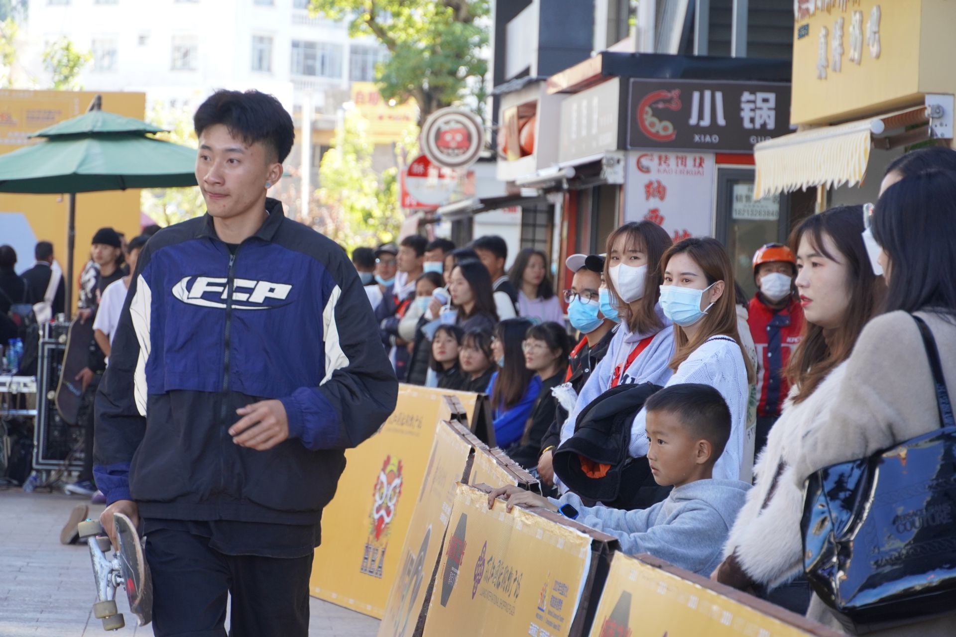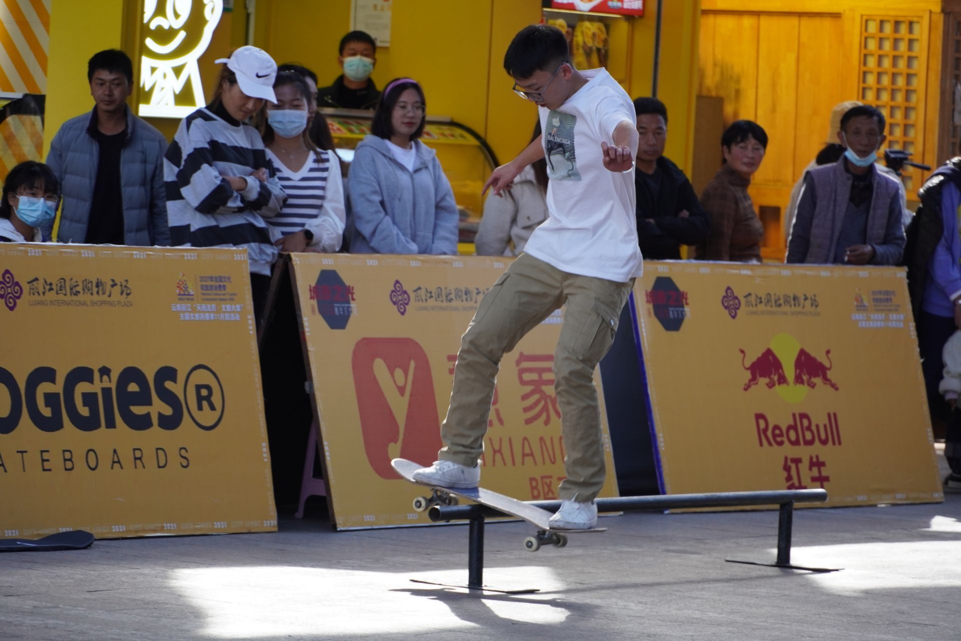 11月20日下午,“2021年全国文化和旅游消费季活动——云南丽江‘天雨流芳·文旅大集’主题文旅消费季”周活动第3期举办。本周为“青年文化周”,丽江市国家文化和旅游消费试点城市建设工作领导小组办公室联合丽江国际购物广场开展了山下街式滑板挑战赛。