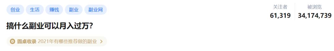 知乎上“搞什么副业可以月入过万”的问题浏览量已经超过3000万
