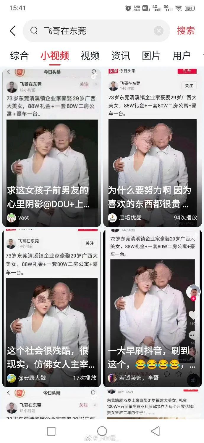 11月19日,一位名叫“飞哥在东莞”的网友,在某平台图文并茂发文:“73岁东莞清溪企业家豪娶29岁广西大美女,88万礼金+88万二房公寓+豪车一辆。”