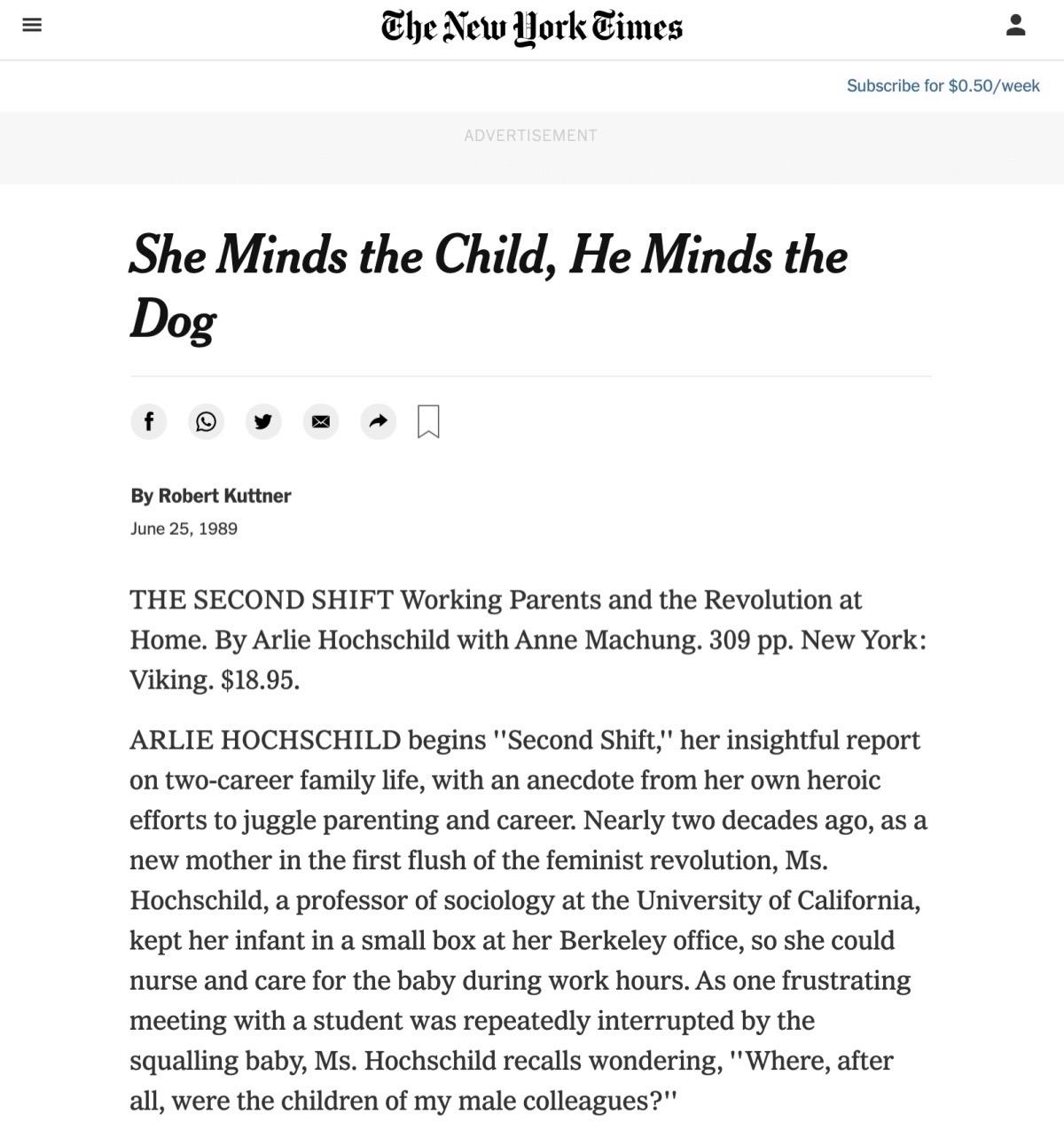 1989年The Second Shift登上纽约时报年度书籍榜单的新闻
