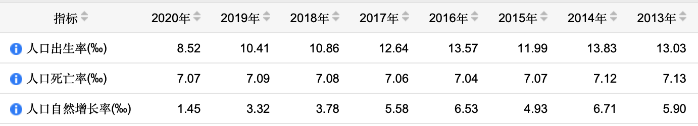 2020年全国人口出生率首次跌破1%(数据来源:国家统计局)