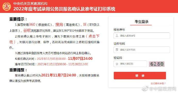 ▲11月22日,中央机关及其直属机构2022年度考试录用公务员准考证开始打印。打印截止时间为11月28日12:00。