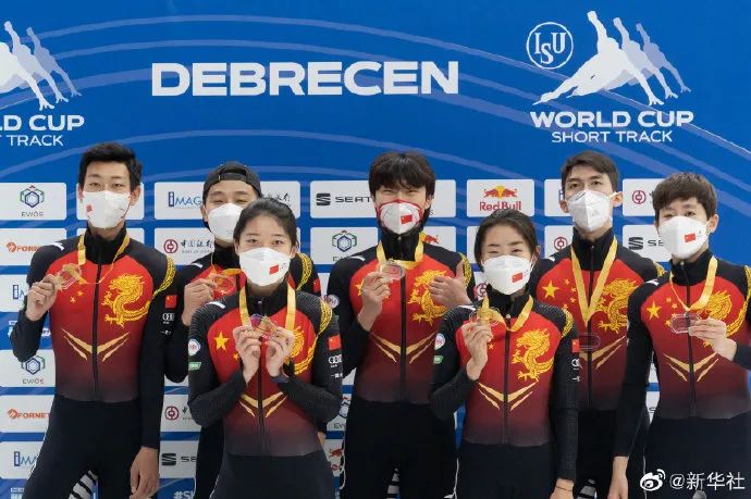 ▲11月21日,在匈牙利德布勒森举行的国际滑联短道速滑世界杯匈牙利站2000米混合接力决赛中,中国队以2分39秒386的成绩获得冠军。