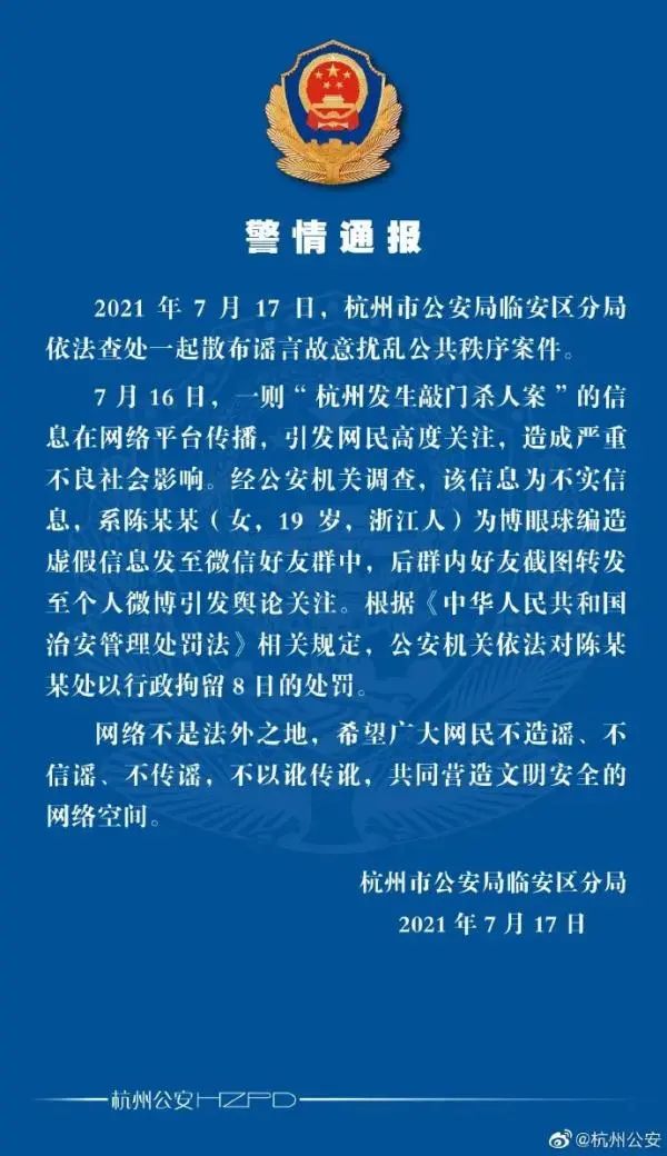 图:相关辟谣信息截图来源:@杭州公安