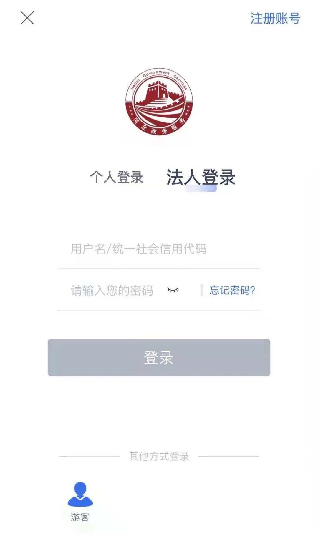 ▲使用法人账户登录冀时办APP