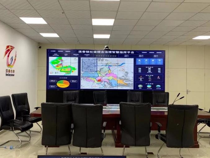 在温春镇投资建设的智能指挥服务中心里,工作人员正结合全镇域铺设监控系统,实时查看秋收情况。各个点位的场景汇聚在一个大屏幕上,非常清晰。