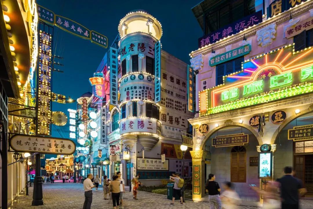 广香街不夜城坐落于横店影视城广州街香港街景区内香港街区维多利亚港区域。夜幕降临,街道两侧的灯光亮起,整个港城区被五颜六色的霓虹灯照亮,成了一座影视主题的不夜城,电影中“活”的老香港再现,体验前所未有的影视主题度假游。