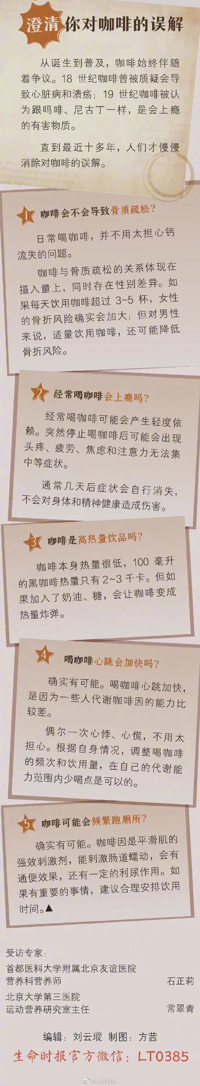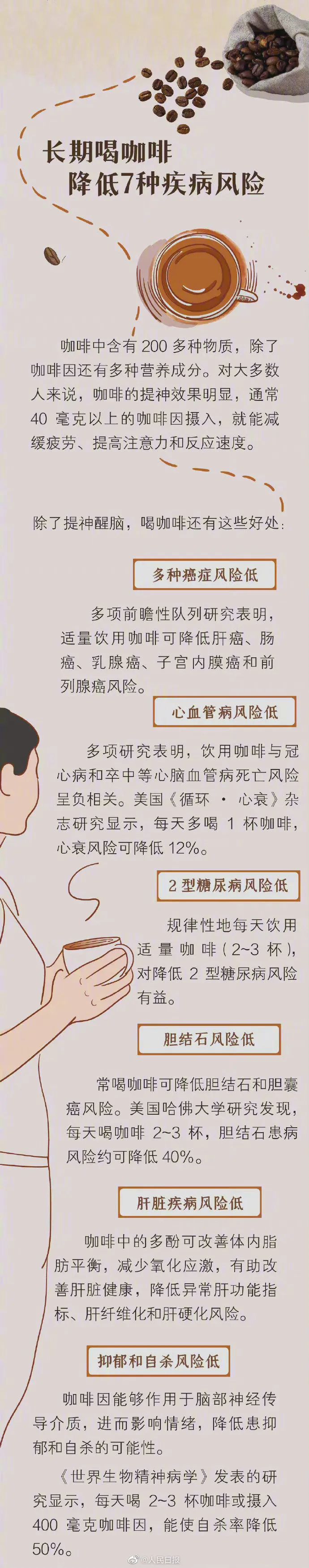 一杯咖啡能唤醒沉睡的清晨,也能照亮疲惫的午后。别小看一杯咖啡,摄入40毫克以上咖啡因就能减缓疲劳、提高注意力。咖啡尽量上午喝,喝咖啡尽量不要加糖,最好不超过推荐摄入量……更多内容戳图了解↓↓↓(来源:人民日报微博)(向上滑动查看更多)