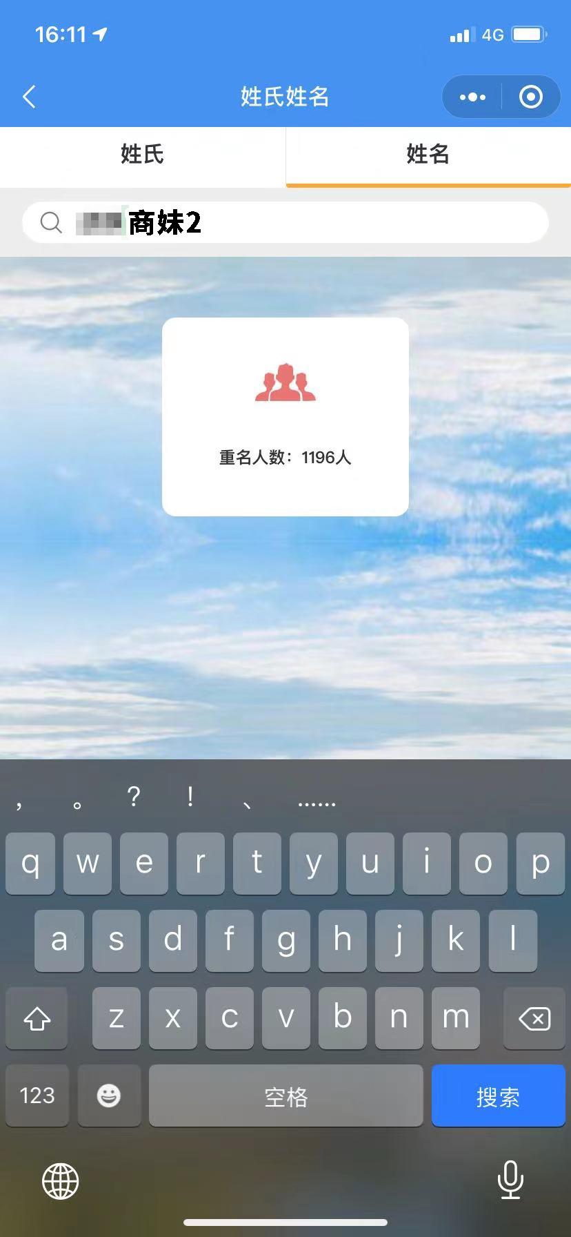 小程序中包含了一项重名查询功能