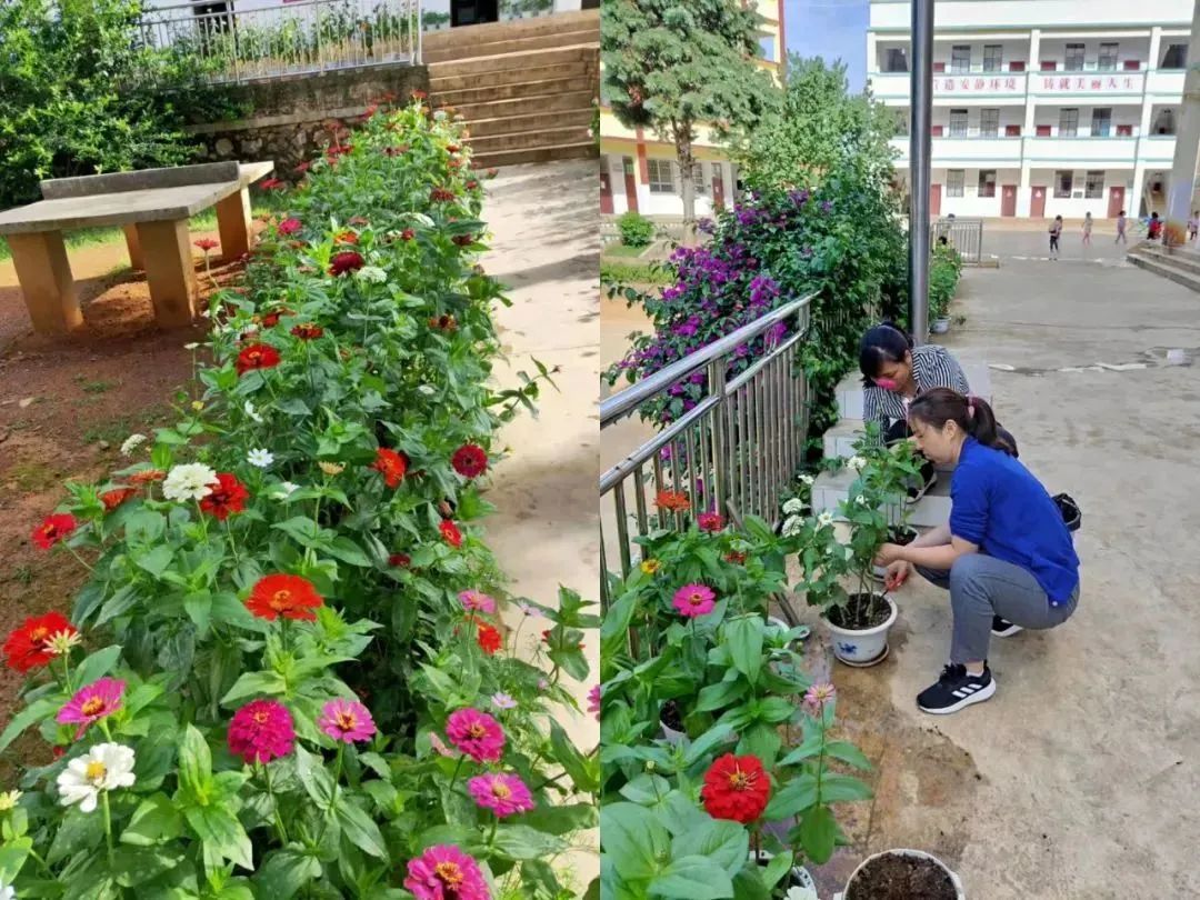 一开始只有少数住校生帮忙,后来许多师生和学生家长也被带动,加入了王云芬“花朵校园”的队伍中。