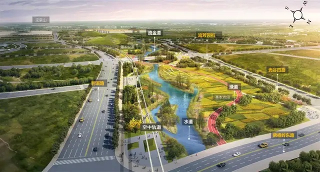 光谷生态大走廊三道整体布局:水道居中,绿道居西,空中轨道居东
