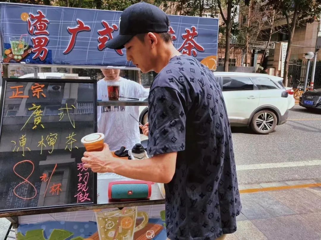 去年疫情之后,成都是最先允许摆摊的一批城市,地摊经济火爆开放的时候,小彭和朋友在深圳突然就商量着来成都摆地摊,体验下生活。两个人聊完之后,买了机票就直接就来了成都,风风火火地摆起了地摊,卖广式柠檬茶。