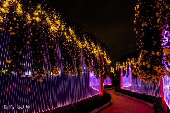 灯光秀区灯光秀区设湖面幻影激光秀、光影长廊和灯光崖菊长廊。夜幕降临,在流光溢彩间,演绎出美仑美奂的菊影之夜。