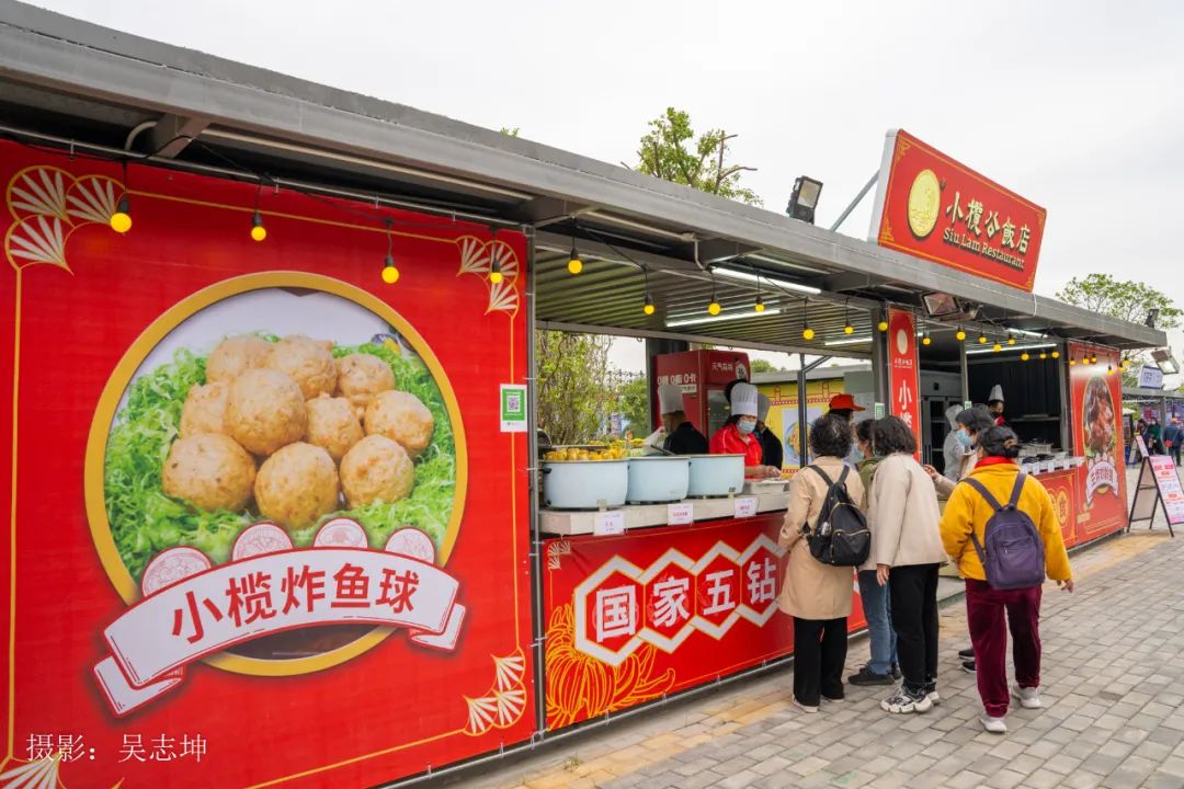 美食区汇聚小榄本土特色的美食,小榄炸鱼球,菊花豆腐花等等让你一饱口腹,而且今年的美食街与往年不同,特别的高大上。