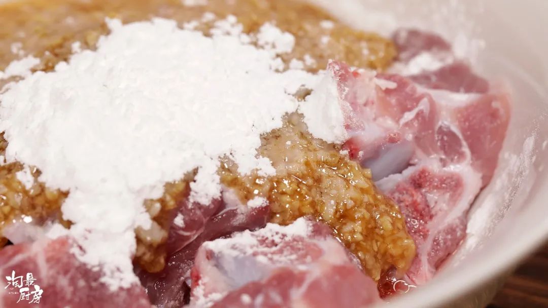 Tips:▶ 腌制时加入淀粉,能让酱汁更好的包裹住排骨,更入味。