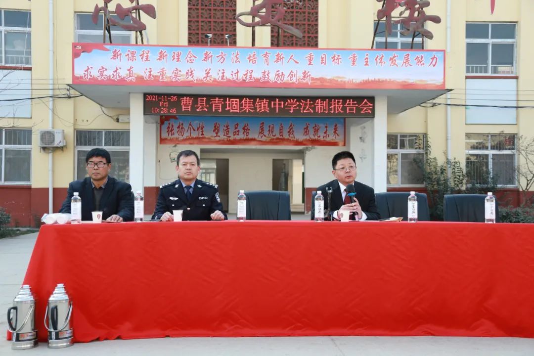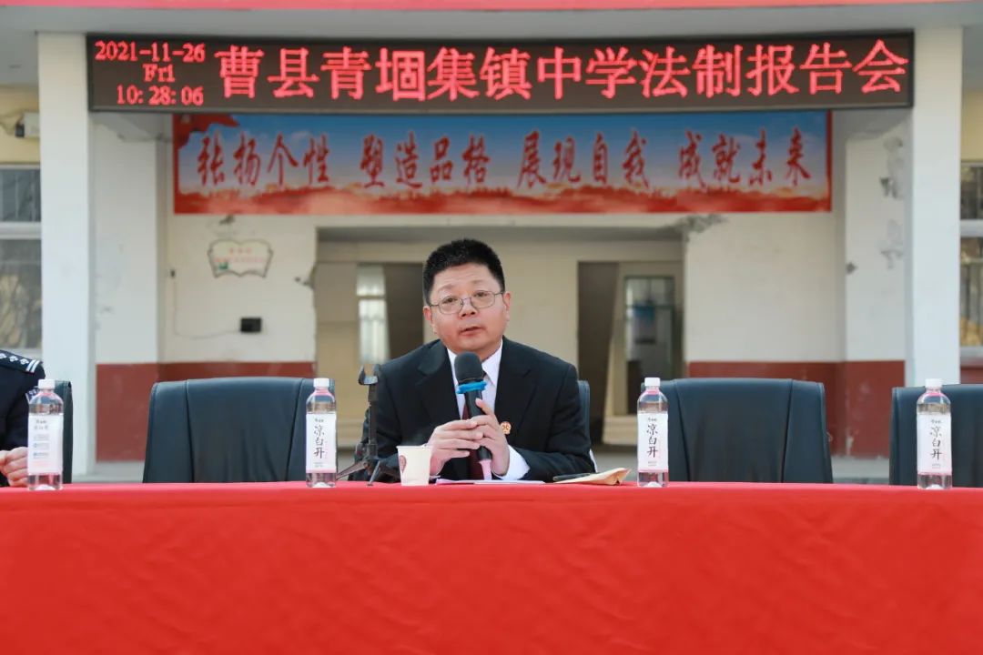 为进一步增强学生的法治观念和自我保护意识,有效预防和防止犯罪的发生,切实维护校园治安环境持续稳定。11月26日,曹县公安局青堌集派出所邀请县法院刑事审判庭齐兴业副庭长走进辖区校园,为两所学校近3000名学生讲授法制课。
