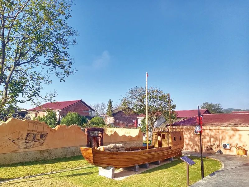 屋场里,一艘实景木船格外引人注目,这便是“一帆风顺”之景。据了解,曾经水运的发达造就了枨冲村沿河附近一大批驾船、造船的能工巧匠。屋场建设过程中,枨冲村王先凤、邱继发、李桂先、夏友全四名老工匠重操旧业,历时十余天制造出一艘长12.8米、宽2.2米、船身高1米、桅杆高8.8米的实景船。“船头向东高昂,寓意迎着日出乘风破浪,事业一帆风顺!”枨冲村党总支副书记钟双介绍。