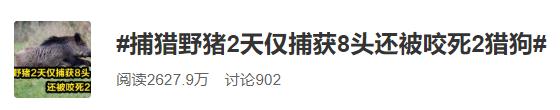 捕猎野猪有多难?拿四川省巴中市通江县为例,泛滥的野猪目前已经达到了2万头,野猪不断和村民遭遇,它们破坏庄稼,啃食作物,给村民带来不小的损失。11月6日,通江县林业局、农业农村局的工作人员,和聘请的四川目前唯一一支拥有持枪证的专业捕猎队,一同进山,开展首次野猪防控捕猎行动。两天半时间,总共猎捕了8头野猪,过程中有2只猎狗被野猪咬死。而根据计划,2021年,通江县要计划猎捕的野猪,是750头。另外,值得注意的是,我国法律规定不允许私自猎杀野猪,情节严重的,将会获刑。
