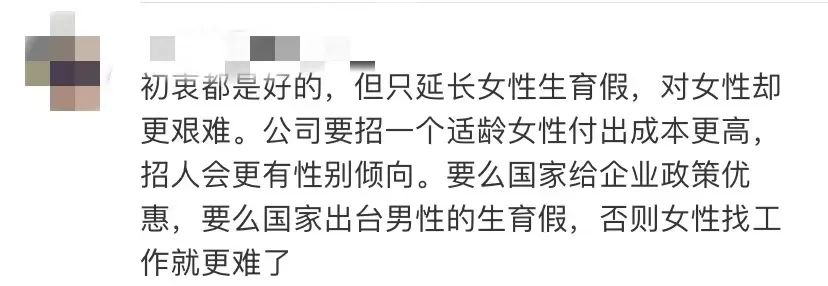 有网友建议,将男性陪产假也大幅延长,缩小产假对男女职员的差异化影响。