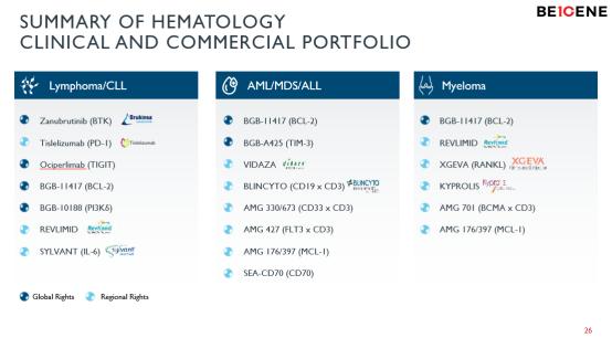 血液肿瘤的重点产品包括:已在多个国家上市的BTK抑制剂泽布替尼,全球化步伐已覆盖超过70个国家,预计近一段时间将继续获得多项批准;Bcl-2抑制剂BGB-11417,临床前研究显示其相比Venetoclax更强效、选择性更高,具备best-in-class潜力,其有望在2022年进入关键性临床阶段;后续管线包括BTK-CDAC、CAR-NK、双抗、ADC等,其中BTK-CDAC预计在今年下半年将完成首例患者给药。