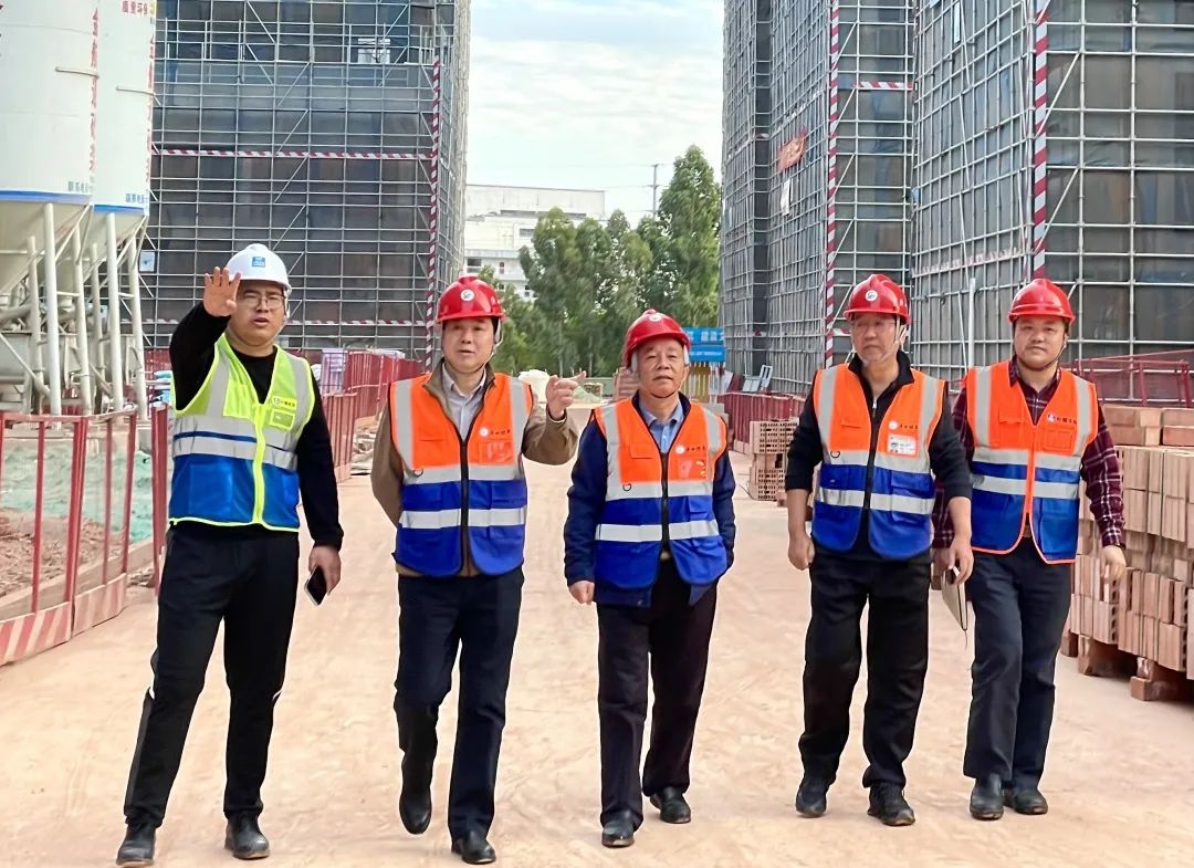 周璋斌一行深入施工现场,实地考察了学生宿舍、教学楼、食堂等设施建设进展情况,仔细听取了项目汇报。周璋斌一行对新校区项目建设进展情况予以肯定,并提出两点要求: