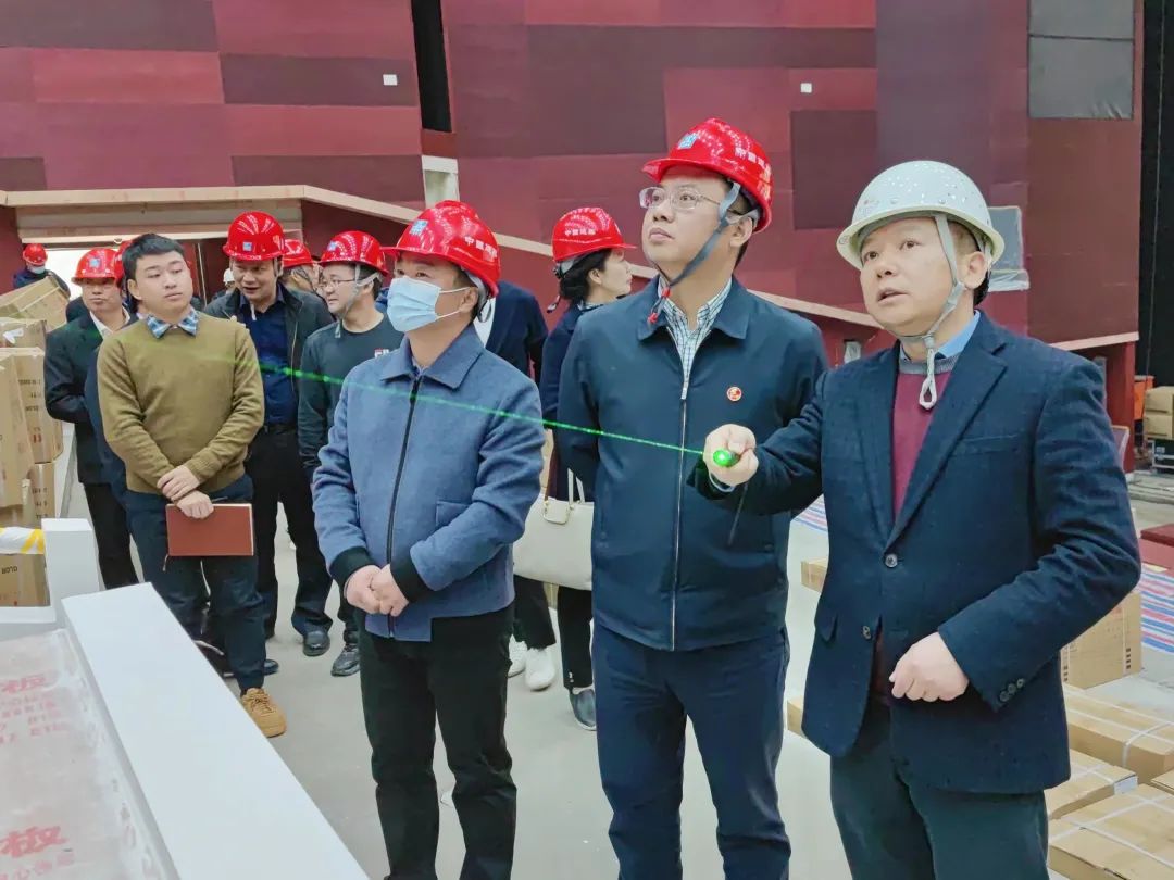 曹伟宏一行认真听取了项目汇报,充分肯定了项目建设进度,表示将全力支持项目建设,并对后续工作提出三点要求:一是强化工期履约,确保剧场按时开演、安全开演;二是各部门要全力以赴支持项目建设,明确牵头部门和任务,合力解决项目进程中的痛点、难点;三是做好统筹兼顾,在施工进度、品牌宣传、交通组织、环境治理、开发运营等方面一并抓好落实。
