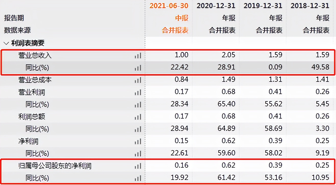 2018年-2020年以及2021年上半年,晶奇网络的营业收入分比为1.59亿元、1.59亿元、2.05亿元和1亿元,同比增长率分别为49.58%、0.09%、28.91%和22.42%;同期归母净利润分别为0.25亿元、0.39亿元、0.62亿元和0.16亿元,同比增长率分别为10.95%、53.16%、61.42%和19.92%。