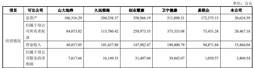 分析人员表示,这或许与晶奇网络的市场份额情况有关。招股书显示,2019年我国医疗信息化市场规模达到540亿元左右,同行可比公司卫宁健康市场占有率为3.50%;创业慧康市场占有率为2.17%;久远银海市场占有率为0.71%,山大地纬市场占有率为0.21%,而晶奇网络市场占有率仅为0.19%。
