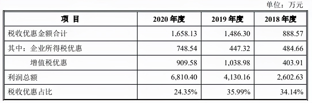 值得注意的是,晶奇网络的税收优惠占净利润比例还偏高。2018年-2020年,晶奇网络的利润总额分别2602.63万元、4130.16万元和6810.40万元,公司享受的主要税收优惠金额分别为888.57万元、1486.30万元和1658.13万元,占利润总额的比例分别为34.14%、35.99%和24.35%。