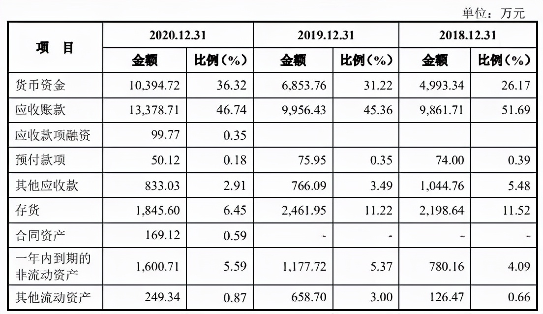 此外,晶奇网络还存在着应收账款规模较大的问题。招股书显示,2018年-2020年,晶奇网络的应收账款余额分别为1.63亿元、1.10亿元和1.50亿元,占流动资产的比例分别为51.69%、45.36%和46.74%。
