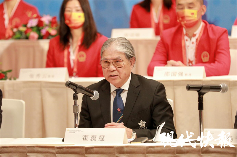 现代快报讯 12月3日,内地奥运健儿代表团抵达香港。当天下午4点,代表团媒体见面会举行。在见面会上,中国香港体育协会暨奥林匹克委员会会长霍震霆表示:“我们很多运动员离不开多年来国家的支持,很多优秀运动员经常可以在内地训练。” ![]()